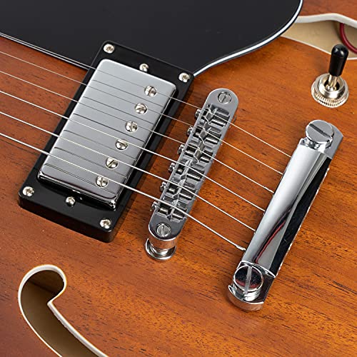 Specification: EART Semi Hollow Body E-330 Style Jazz Gitaar Nieuwzilveren bundel met 6 snaren gesloten pick-up gitaar, Sunburst kleur
